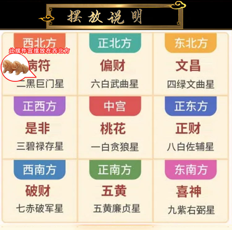 这款双禄如意是由白色石所雕刻的一对如意。因其名为如意,具有美好寓意,代表如意吉祥,顺顺利利,对于镇压二黑巨门星起着很不错的作用。所以在流年的时候摆放一对石如意在病符位的话,是能够镇压邪祟与病灾,帮人们消除疾病的纠缠,保佑人们在流年内免受病灾折磨之苦,并且寓意运势上能够顺心安康,平安喜乐。
