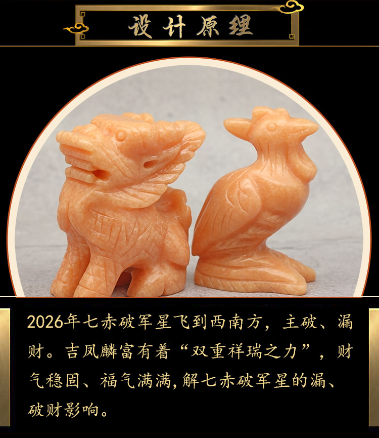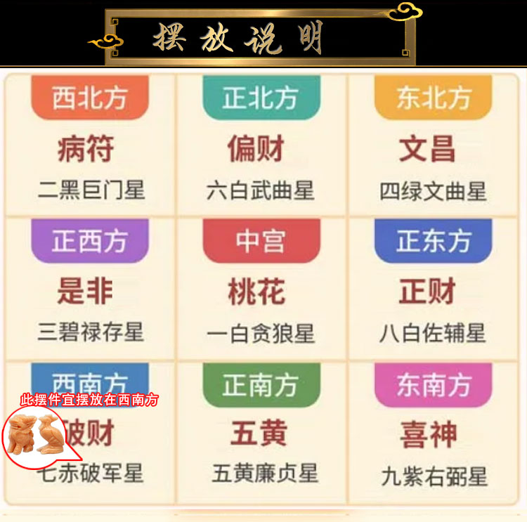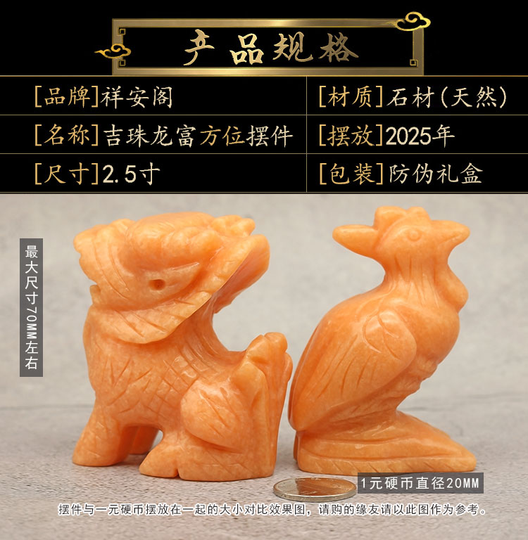 吉珠龙富是由白色石雕刻的一条龙和一只面前带有圆珠的鸡构成的。其取龙的威严来镇压七赤破军星的力量,而鸡与圆珠又有吉利与招财的寓意,可以在一定程度上化解七赤破军星的漏财破财影响。所以在流年正北方位处摆放一对【祥安阁吉珠龙富】摆件也是寓意挺好的,可以保佑屋主在流年的时候免受破财或者漏财的打击,并且能增强财运,稳定运势,喜迎四方之财,广招财源。