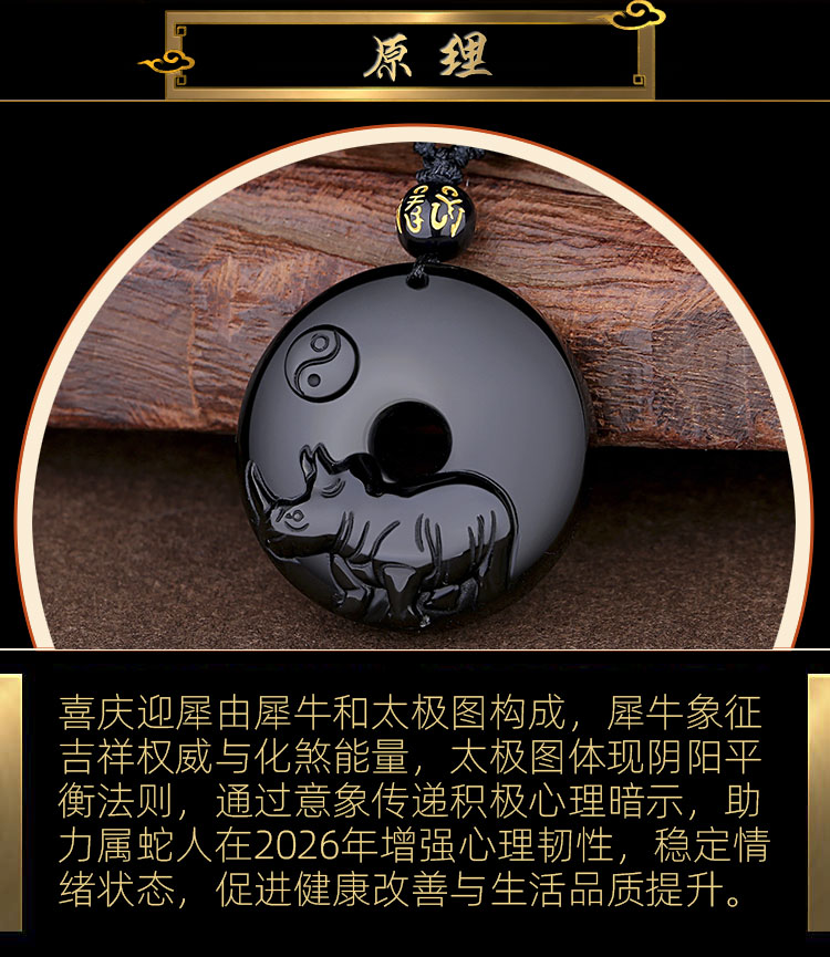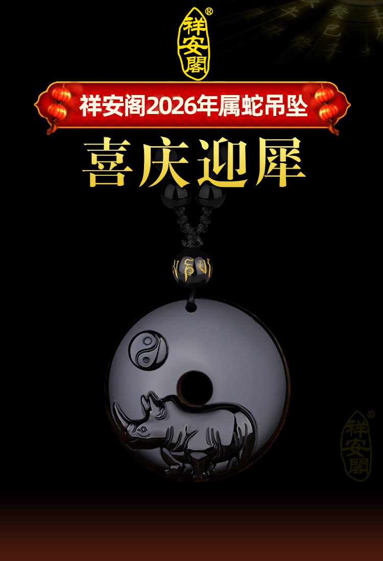 - 属蛇人在2026丙午马年的时候受凶星“病符”纠缠而病灾缠身,健康不顺,久病难愈。因此在流年的时候常佩戴一条【祥安阁喜庆迎犀】吊坠有利于属蛇人在马年时的阴阳调和,帮助属蛇人稳定磁场,净化负面能量,消除霉运和病灾邪气,保佑属蛇人的健康能够迅速好转,平安喜乐。犀牛作为一种古老神秘的动物,在传统文化中占据独特地位,常被视作为祥瑞之征,寓意吉祥、富贵、长寿和权威,具有强大的风水能量,其中“犀”与“喜”谐音,也暗指能够带来欢喜,喜事;而犀牛角从古至今更是人们趋之若鹜的宝贝,而在风水作用上,犀牛饰品也往往具有化煞、辟邪的作用,能够帮助人们有效规避灾难。
