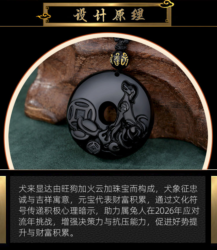 属兔人在步入2026年的时候犯流年有破太岁危机,且运势上多逢“绞煞”、“卷舌”等的干扰,流年灾祸较多,易卷入是非和伤灾当中。而属兔人在丙午马年的时候佩戴一条【祥安阁犬来显达】吊坠能够有效为自身转运催运,其中以与生肖兔六合的属相狗来压制流年破太岁危机,消除流年里的低迷运势和能量,并且还可保佑属兔人在马年运势旺盛,八方来财,经济实力蒸蒸日上,亨通显达,诸事胜意。